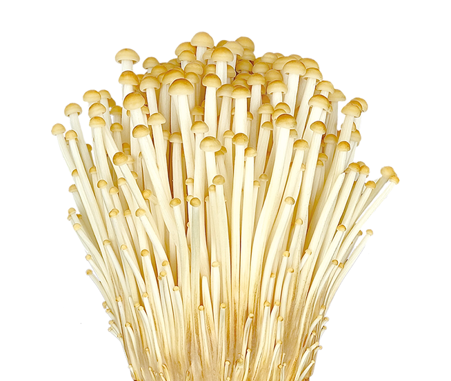 金針菇屬菌類,其菌蓋球形、表面黏滑、基部相連、呈簇生狀。色澤潔白,商品外觀好,廣受消費者歡迎。